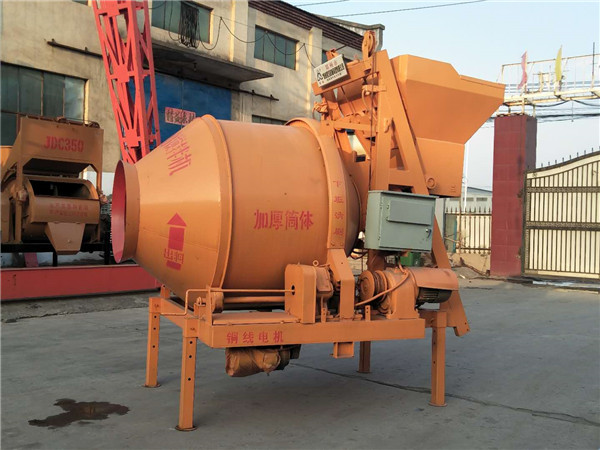 该机是双锥形拌筒正转搅拌、反转出料、自落式混凝土搅拌机,可搅拌塑性的半干硬性混凝土,本机拌筒由齿轮转动,与磨擦式搅拌机相比具有传动可靠、料斗卸料速度快、不粘料、雨雾天拌筒不打滑等优点。料斗落入地面以下(全爬机)能降低装料工人劳动强度,如果与匹配的配料机使用,能组成简单的电子计量搅拌站,全爬机主机搅拌和料斗提升分成两个减速机来完成,与半爬搅拌机相比,减轻了主机搅拌减速机的负荷,增加了专一提升料斗的减速机。